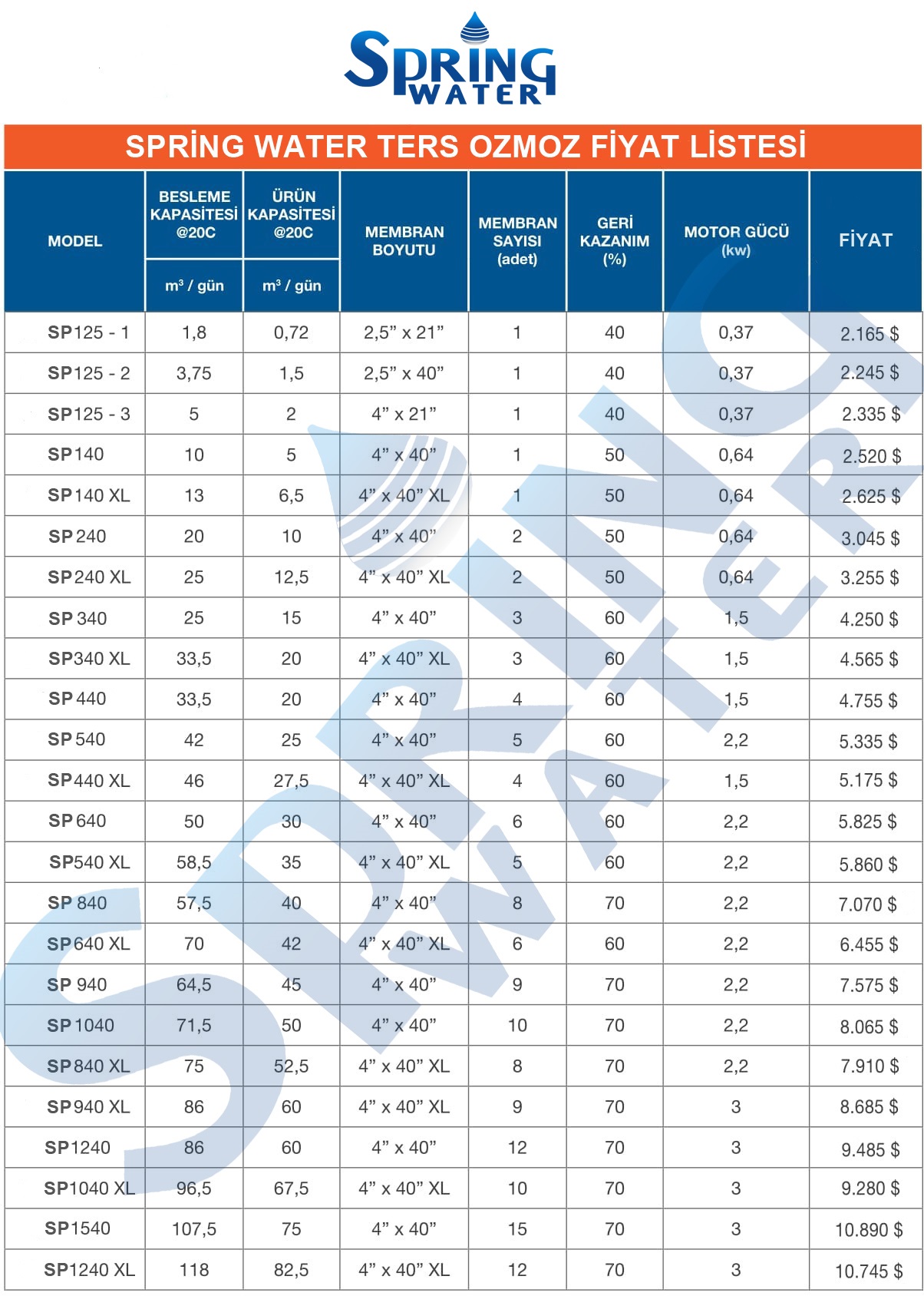 Endüstriyel Ters Ozmos ve Saf Su Fiyat Listemiz size en iyi hizmeti sunmak için hazırlanmıştır. Detaylı bilgi için bizleri arayınız.